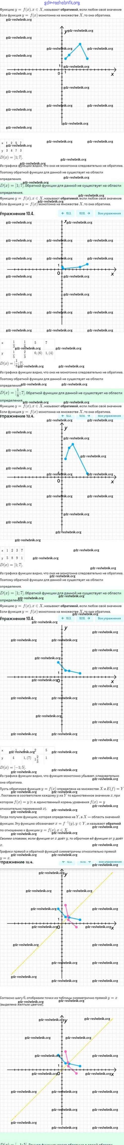 gdz-reshebnik.org - сайт готовых домашних заданий и решебников для школьников по Алгебре для десятого класса. Предоставляем готовые ответы на задания, авторские материалы к Задачнику Мордкович, Семёнов Базовый и углубленный уровень - §10. Обратная функция 10.4 . Основная часть контента представлена в бесплатном онлайн-формате с удобным и простым интерфейсом.