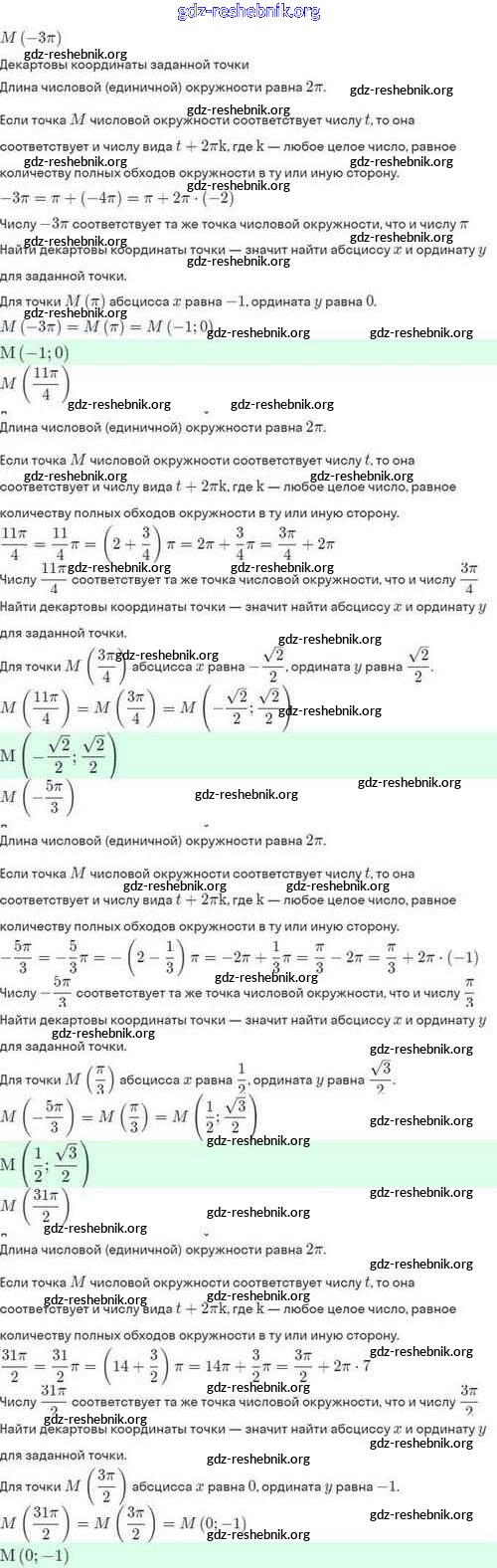 ГДЗ решебники Задачник по Алгебре 10 класс Мордкович, Семёнов Базовый и углубленный уровень - §12. Числовая окружность на координатной плоскости 12.2