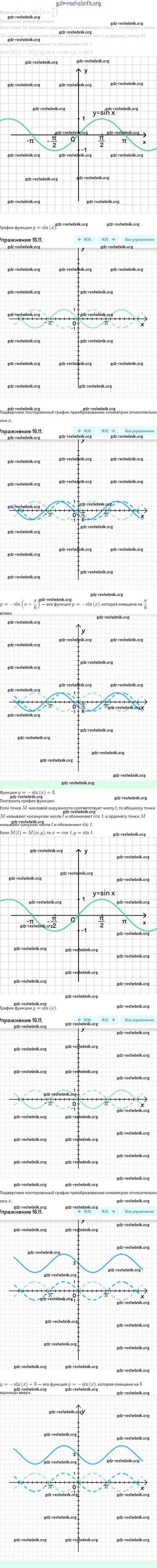 gdz-reshebnik.org - сайт готовых домашних заданий и решебников для школьников по Алгебре для десятого класса. Предоставляем готовые ответы на задания, авторские материалы к Задачнику Мордкович, Семёнов Базовый и углубленный уровень - §16. Функции y=sinx, y=cosx, их свойства и графики 16.11 . Основная часть контента представлена в бесплатном онлайн-формате с удобным и простым интерфейсом.