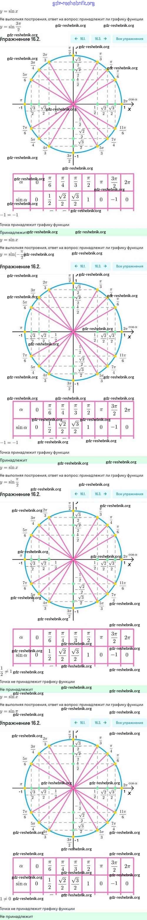 ГДЗ решебники Задачник по Алгебре 10 класс Мордкович, Семёнов Базовый и углубленный уровень - §16. Функции y=sinx, y=cosx, их свойства и графики 16.2