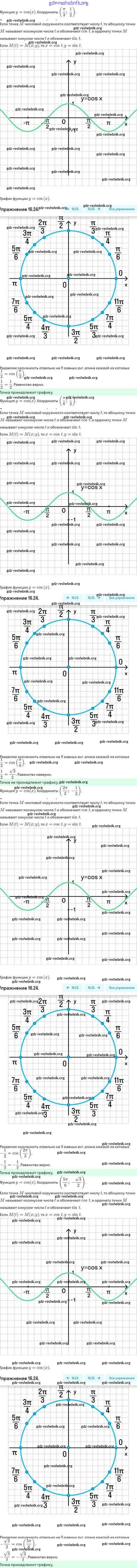 ГДЗ решебники Задачник по Алгебре 10 класс Мордкович, Семёнов Базовый и углубленный уровень - §16. Функции y=sinx, y=cosx, их свойства и графики 16.24