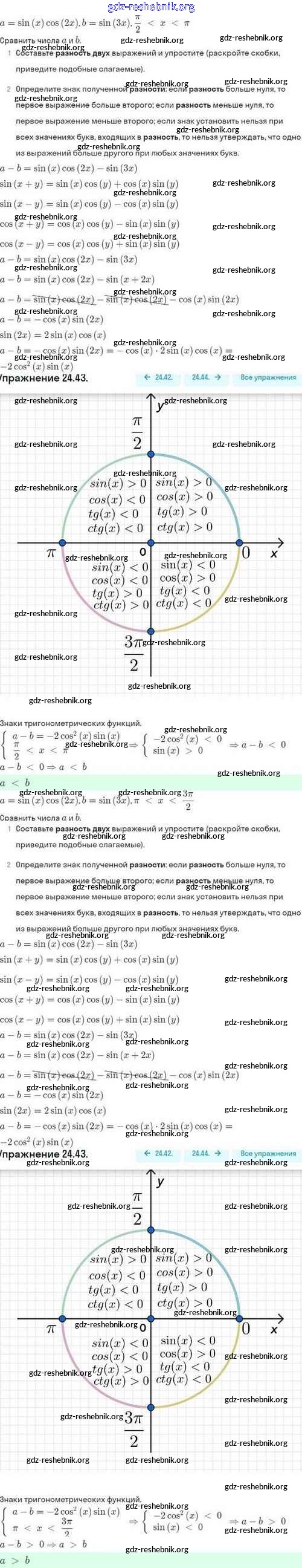 ГДЗ решебники Задачник по Алгебре 10 класс Мордкович, Семёнов Базовый и углубленный уровень - §24. Синус и косинус суммы и разности аргументов 24.43