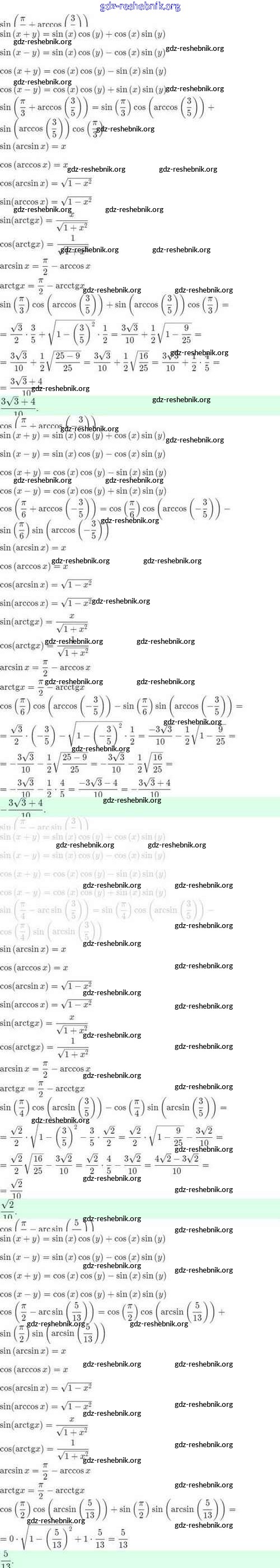ГДЗ решебники Задачник по Алгебре 10 класс Мордкович, Семёнов Базовый и углубленный уровень - §24. Синус и косинус суммы и разности аргументов 24.49