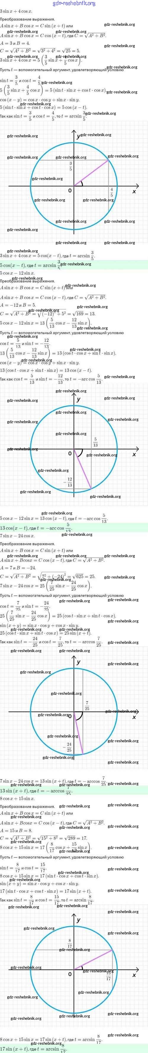 ГДЗ решебники Задачник по Алгебре 10 класс Мордкович, Семёнов Базовый и углубленный уровень - §30. Преобразование выражения Asinx+Bcosx к виду Csin(x+t) 30.2