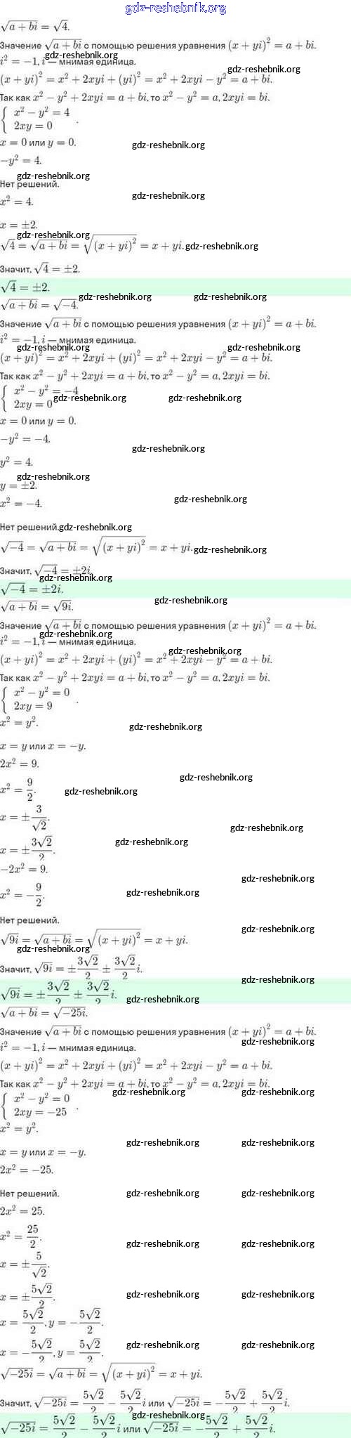 ГДЗ решебники Задачник по Алгебре 10 класс Мордкович, Семёнов Базовый и углубленный уровень - §35. Комплексные числа и квадратные уравнения 35.11