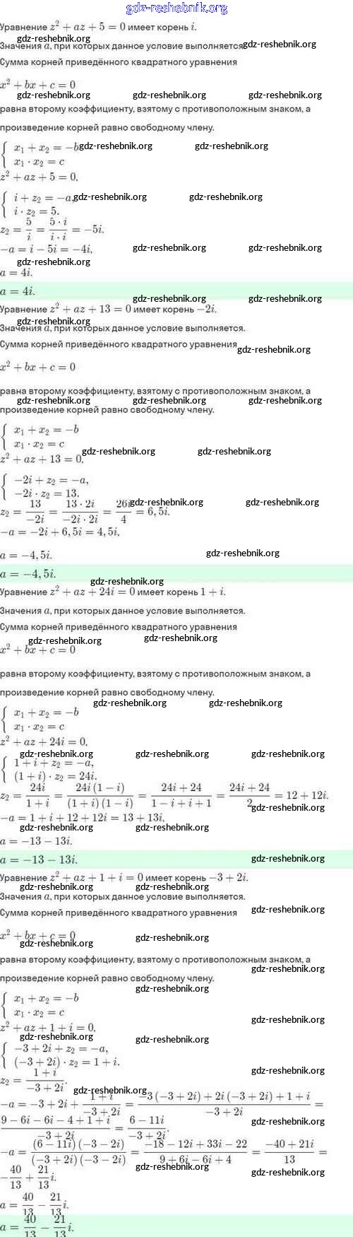 ГДЗ решебники Задачник по Алгебре 10 класс Мордкович, Семёнов Базовый и углубленный уровень - §35. Комплексные числа и квадратные уравнения 35.20