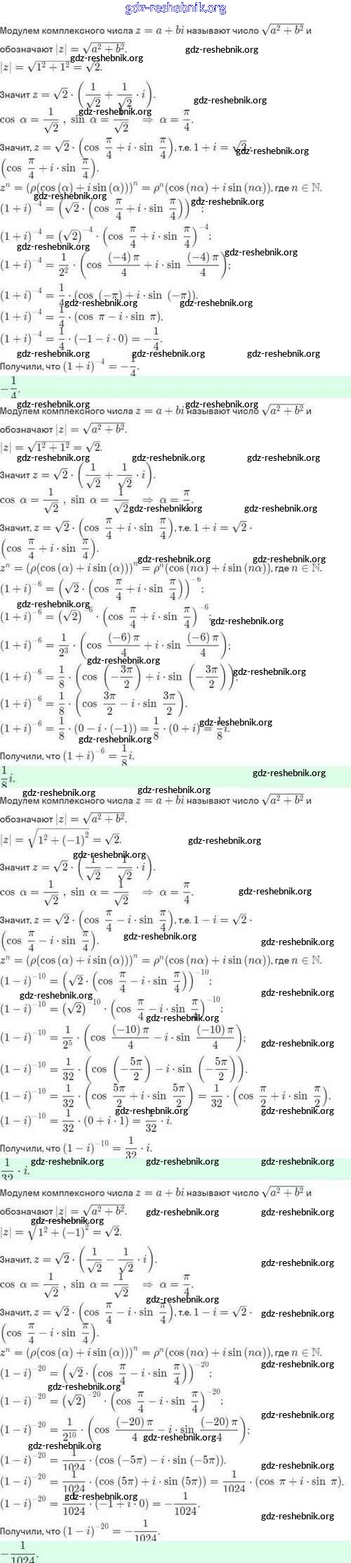 gdz-reshebnik.org - сайт готовых домашних заданий и решебников для школьников по Алгебре для десятого класса. Предоставляем готовые ответы на задания, авторские материалы к Задачнику Мордкович, Семёнов Базовый и углубленный уровень - §36. Возведение комплексного числа в степень, извлечение кубического корня из комплексного числа 36.11 . Основная часть контента представлена в бесплатном онлайн-формате с удобным и простым интерфейсом.