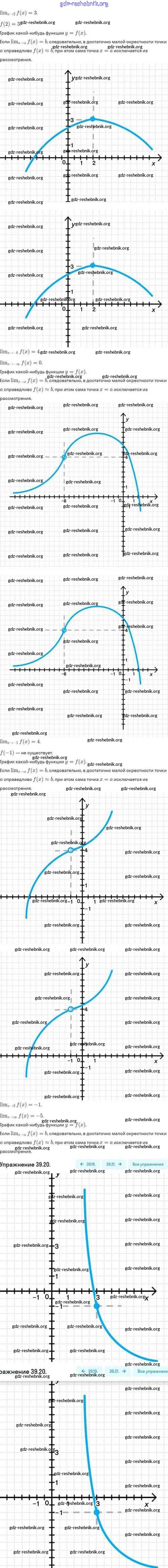 gdz-reshebnik.org - сайт готовых домашних заданий и решебников для школьников по Алгебре для десятого класса. Предоставляем готовые ответы на задания, авторские материалы к Задачнику Мордкович, Семёнов Базовый и углубленный уровень - §39. Предел функции 39.20 . Основная часть контента представлена в бесплатном онлайн-формате с удобным и простым интерфейсом.
