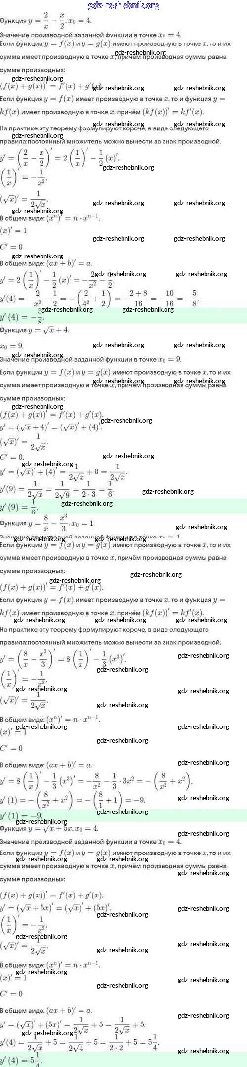 ГДЗ решебники Задачник по Алгебре 10 класс Мордкович, Семёнов Базовый и углубленный уровень - §41. Вычисление производных 41.26
