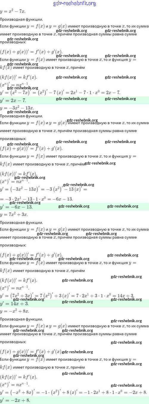ГДЗ решебники Задачник по Алгебре 10 класс Мордкович, Семёнов Базовый и углубленный уровень - §41. Вычисление производных 41.5