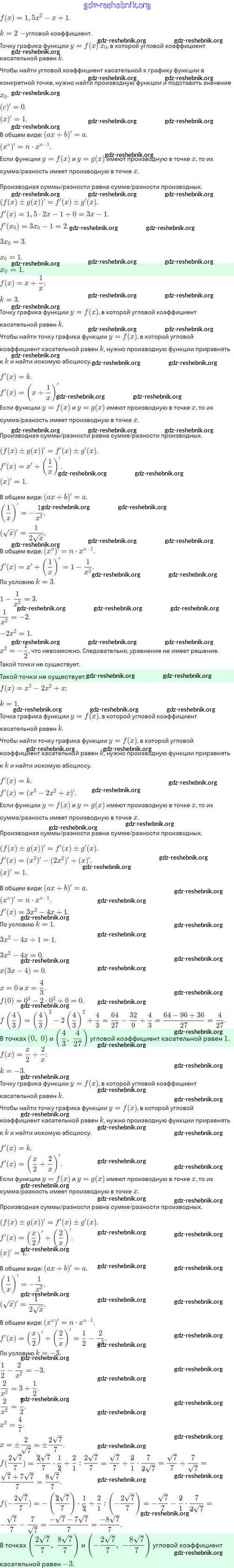 ГДЗ решебники Задачник по Алгебре 10 класс Мордкович, Семёнов Базовый и углубленный уровень - §43. Уравнение касательной к графику функции 43.12