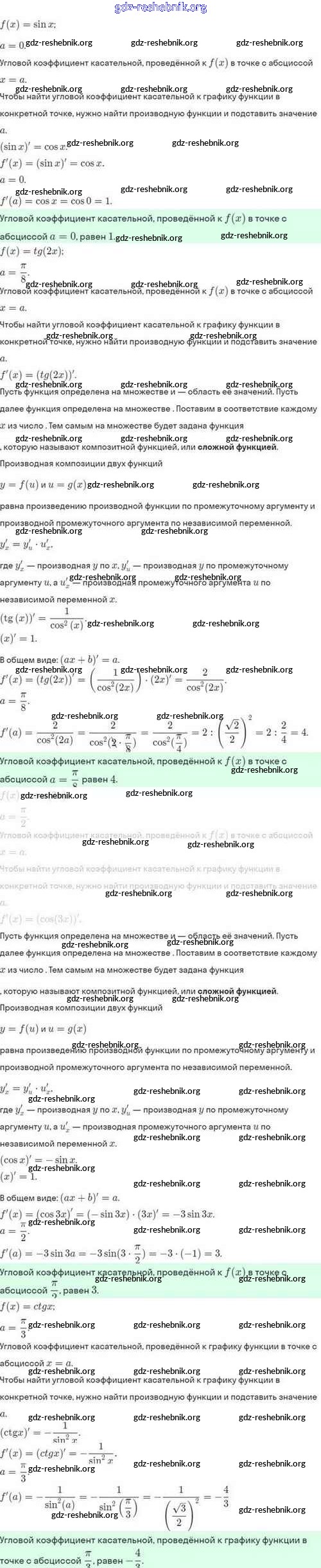 ГДЗ решебники Задачник по Алгебре 10 класс Мордкович, Семёнов Базовый и углубленный уровень - §43. Уравнение касательной к графику функции 43.5