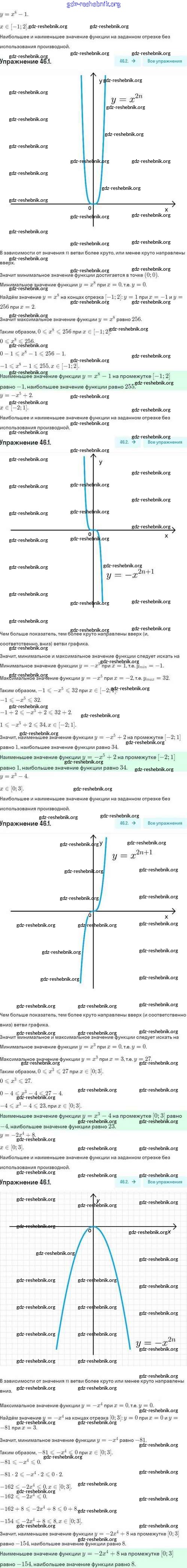 ГДЗ решебники Задачник по Алгебре 10 класс Мордкович, Семёнов Базовый и углубленный уровень - §46. Нахождение наибольших и наименьших значений функции 46.1