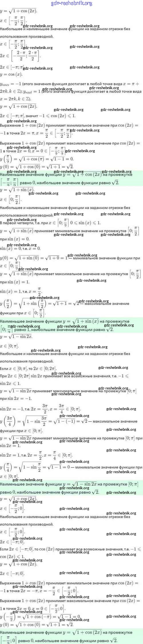 ГДЗ решебники Задачник по Алгебре 10 класс Мордкович, Семёнов Базовый и углубленный уровень - §46. Нахождение наибольших и наименьших значений функции 46.4