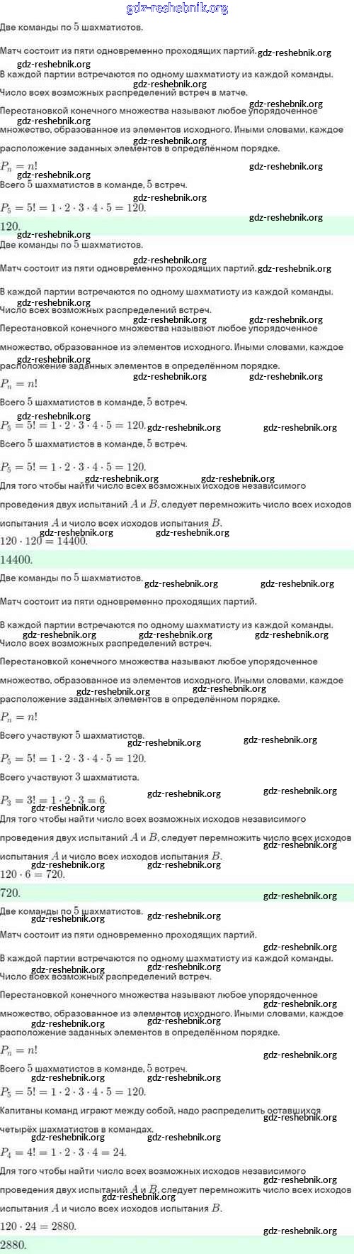 ГДЗ решебники Задачник по Алгебре 10 класс Мордкович, Семёнов Базовый и углубленный уровень - §47. Правило умножения. Перестановки и факториалы 47.22
