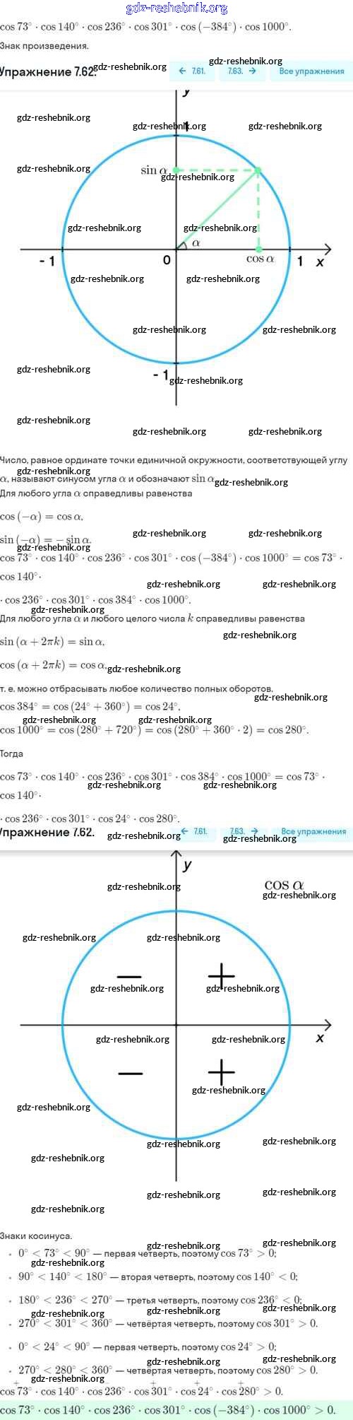 gdz-reshebnik.org - сайт готовых домашних заданий и решебников для школьников по Алгебре для десятого класса. Предоставляем готовые ответы на задания, авторские материалы к Учебнику Никольский, Потапов МГУ - школе Базовый и углубленный уровень - §7. Синус и косинус угла 7.62 . Основная часть контента представлена в бесплатном онлайн-формате с удобным и простым интерфейсом.