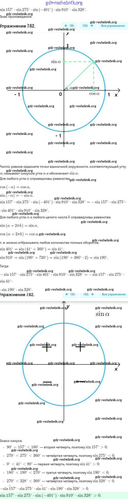 ГДЗ решебники Учебник по Алгебре 10 класс Никольский, Потапов МГУ - школе Базовый и углубленный уровень - §7. Синус и косинус угла 7.62