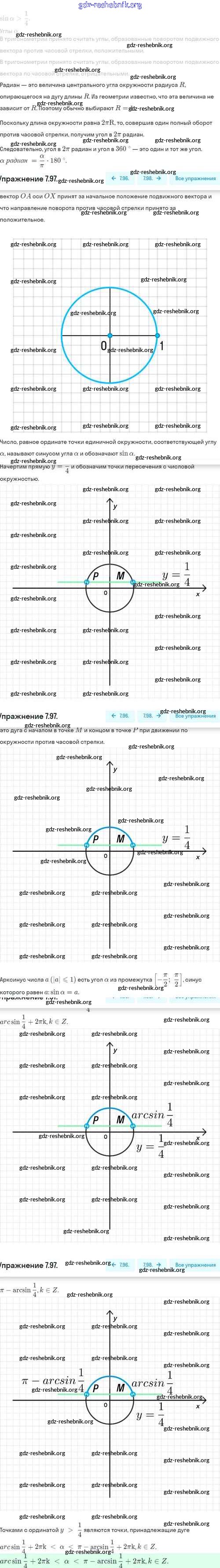 ГДЗ решебники Учебник по Алгебре 10 класс Никольский, Потапов МГУ - школе Базовый и углубленный уровень - §7. Синус и косинус угла 7.97