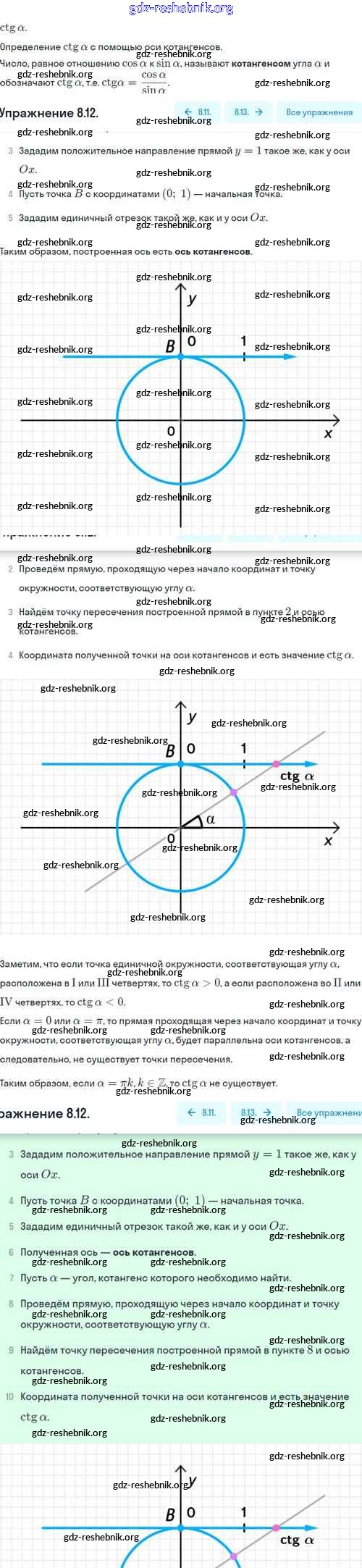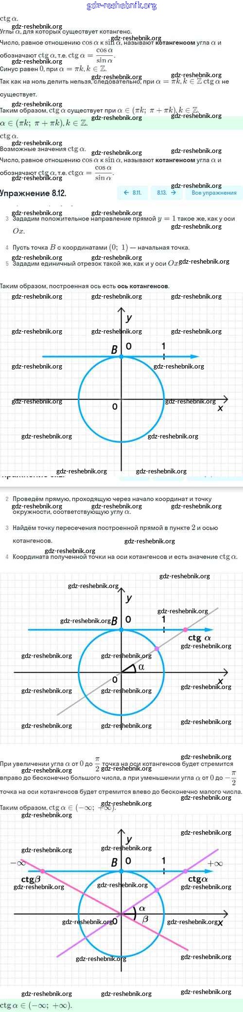 gdz-reshebnik.org - сайт готовых домашних заданий и решебников для школьников по Алгебре для десятого класса. Предоставляем готовые ответы на задания, авторские материалы к Учебнику Никольский, Потапов МГУ - школе Базовый и углубленный уровень - §8. Тангес и катангес угла 8.12 . Основная часть контента представлена в бесплатном онлайн-формате с удобным и простым интерфейсом.