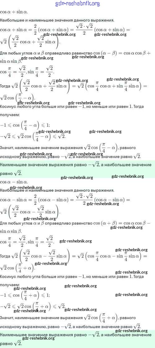 ГДЗ решебники Учебник по Алгебре 10 класс Никольский, Потапов МГУ - школе Базовый и углубленный уровень - §9. Формулы сложения 9.18