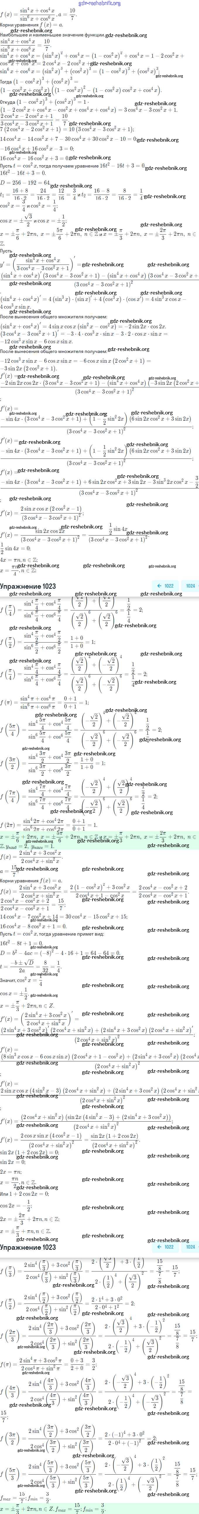 gdz-reshebnik.org - сайт готовых домашних заданий и решебников для школьников по Алгебре для одиннадцатого класса. Предоставляем готовые ответы на задания, авторские материалы к Учебнику Колягин, Ткачева Базовый и углубленный уровень - Упражнения 1023 . Основная часть контента представлена в бесплатном онлайн-формате с удобным и простым интерфейсом.