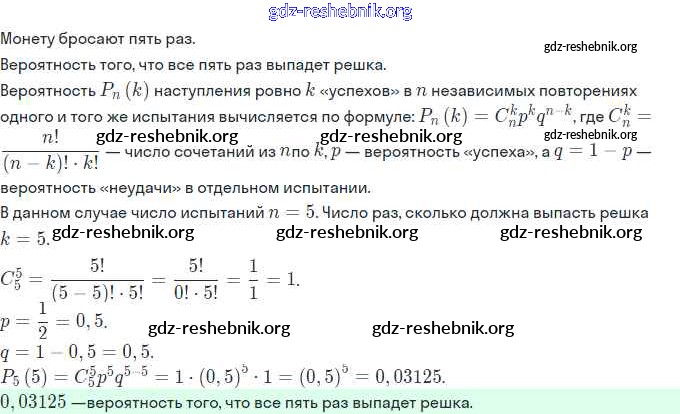 ГДЗ решебники Учебник по Алгебре 11 класс Мордкович, Семёнов Базовый и углубленный уровень - §23. Независимые повторения испытаний с двумя исходами 2