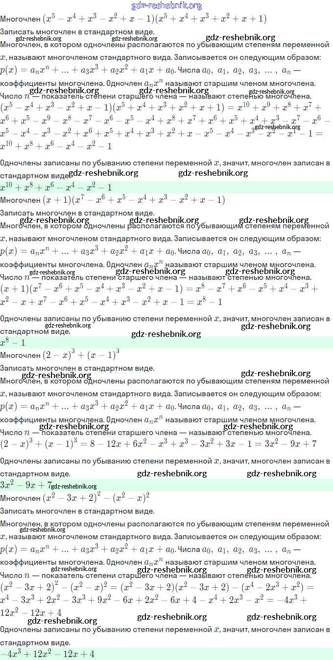 ГДЗ решебники Задачник по Алгебре 11 класс Мордкович, Семёнов Часть Базовый и углубленный уровень - §1. Многочлены от одной переменной 1.5