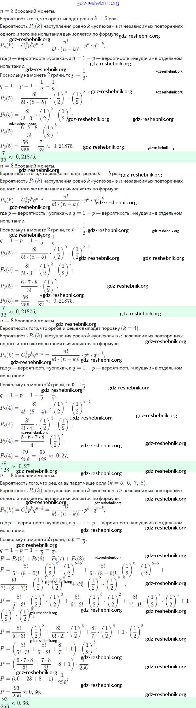 ГДЗ решебники Задачник по Алгебре 11 класс Мордкович, Семёнов Часть Базовый и углубленный уровень - §23. Независимые повторения испытаний с двумя исходами 23.5