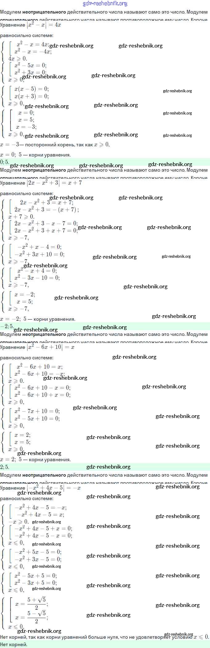 gdz-reshebnik.org - сайт готовых домашних заданий и решебников для школьников по Алгебре для одиннадцатого класса. Предоставляем готовые ответы на задания, авторские материалы к Задачнику Мордкович, Семёнов Часть Базовый и углубленный уровень - §29. Уравнения и неравенства с модулями 29.9 . Основная часть контента представлена в бесплатном онлайн-формате с удобным и простым интерфейсом.
