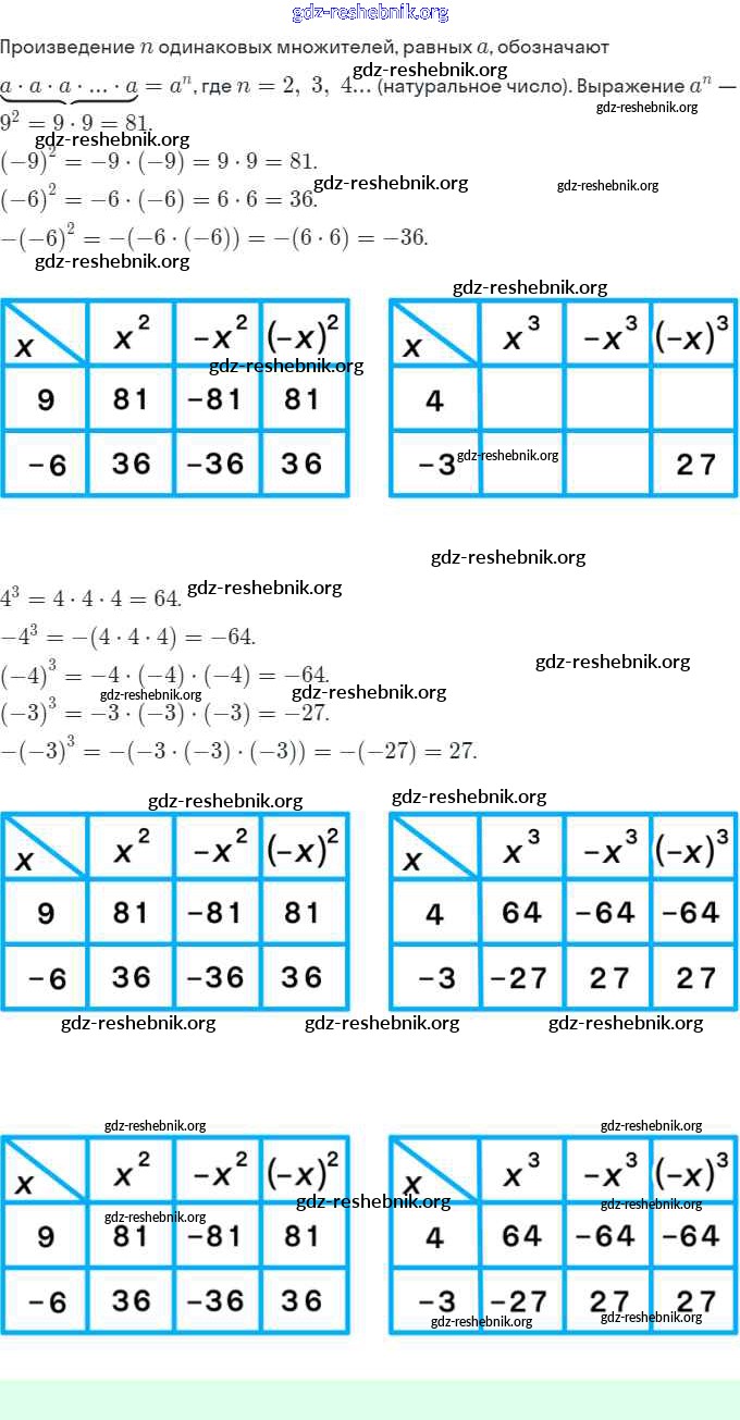 ГДЗ решебники Рабочая тетрадь по Алгебре 7 класс Ключникова, Комиссарова УМК - §16. Таблицы основных степеней 7