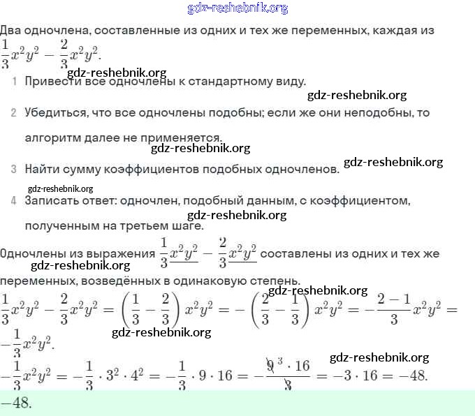 gdz-reshebnik.org - сайт готовых домашних заданий и решебников для школьников по Алгебре для седьмого класса. Предоставляем готовые ответы на задания, авторские материалы к Рабочей тетради Ключникова, Комиссарова УМК - §21. Сложение и вычитание одночленов 8 . Основная часть контента представлена в бесплатном онлайн-формате с удобным и простым интерфейсом.