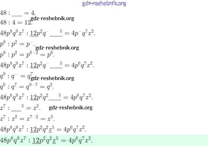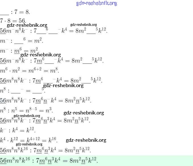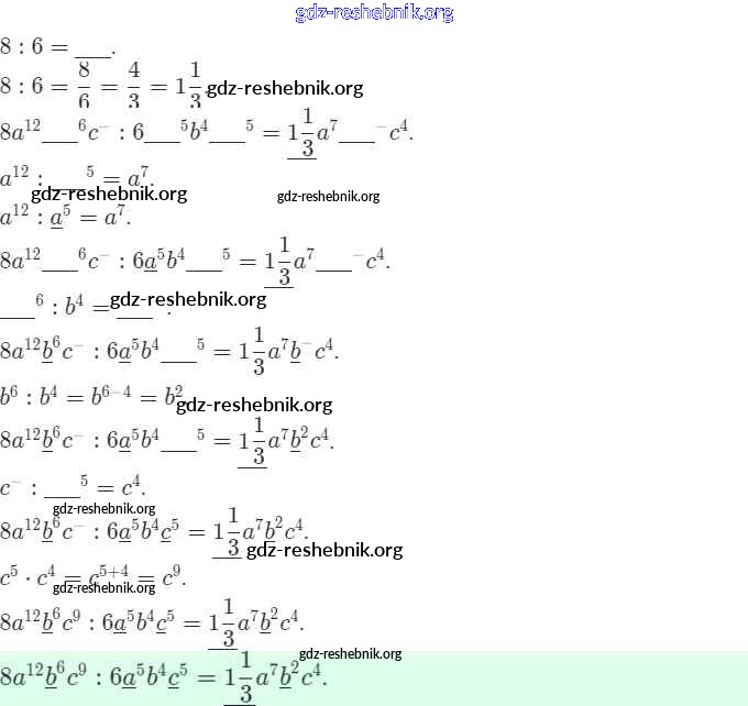 gdz-reshebnik.org - сайт готовых домашних заданий и решебников для школьников по Алгебре для седьмого класса. Предоставляем готовые ответы на задания, авторские материалы к Рабочей тетради Ключникова, Комиссарова УМК - §23. Деление одночлена на одночлен 8 . Основная часть контента представлена в бесплатном онлайн-формате с удобным и простым интерфейсом.