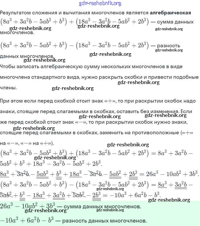 §25. Сложение и вычитание многочленов