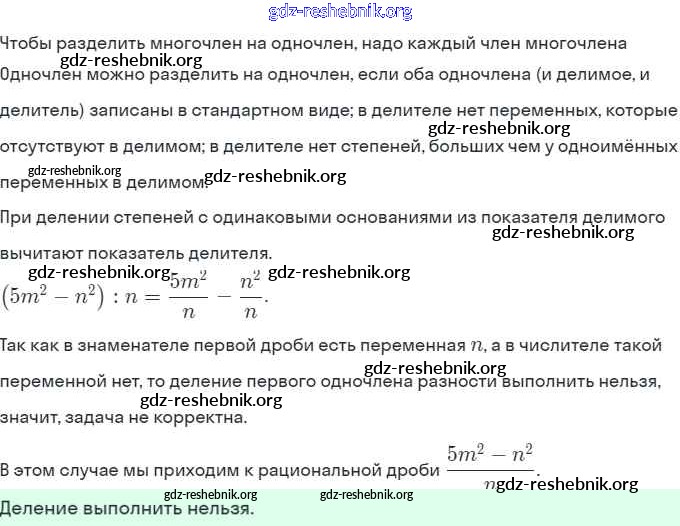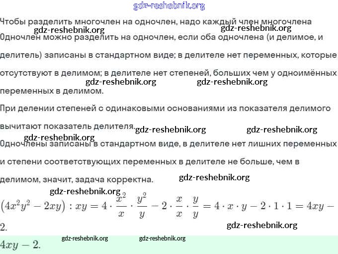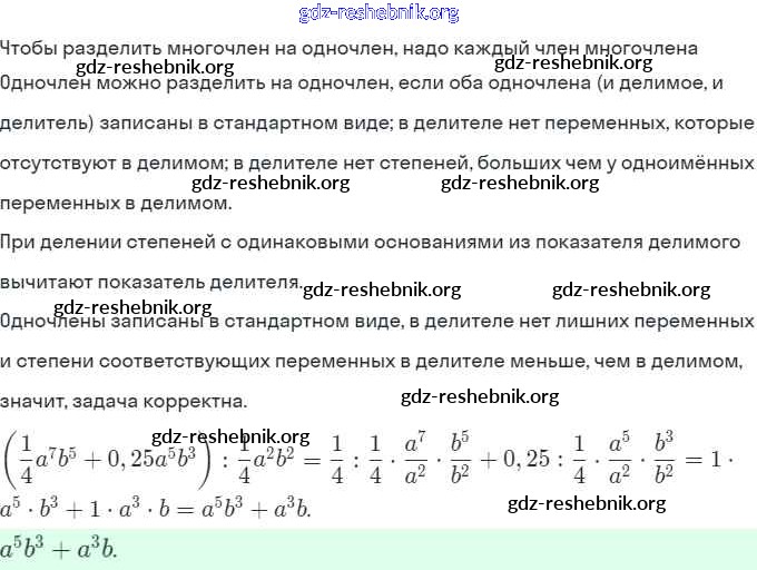 gdz-reshebnik.org - сайт готовых домашних заданий и решебников для школьников по Алгебре для седьмого класса. Предоставляем готовые ответы на задания, авторские материалы к Рабочей тетради Ключникова, Комиссарова УМК - §29. Деление многочлена на одночлен 3 . Основная часть контента представлена в бесплатном онлайн-формате с удобным и простым интерфейсом.