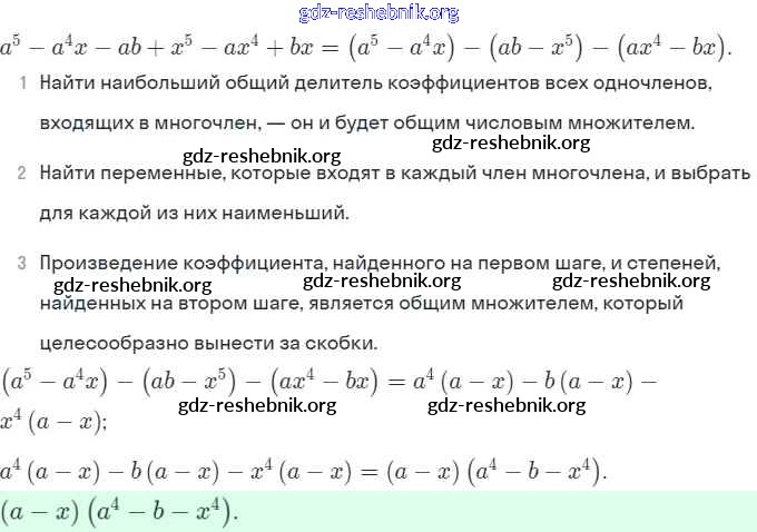 gdz-reshebnik.org - сайт готовых домашних заданий и решебников для школьников по Алгебре для седьмого класса. Предоставляем готовые ответы на задания, авторские материалы к Рабочей тетради Ключникова, Комиссарова УМК - §32. Способ группировки 5 . Основная часть контента представлена в бесплатном онлайн-формате с удобным и простым интерфейсом.