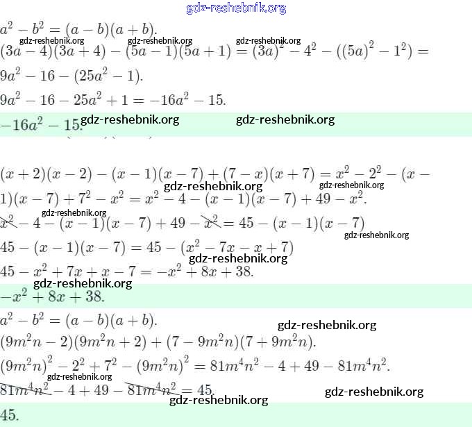 ГДЗ решебники Рабочая тетрадь по Алгебре 7 класс Мерзляк, Полонский Алгоритм успеха Часть 1, 2 - § 14. Произведение разности и суммы двух выражений. Страница 71-74 7
