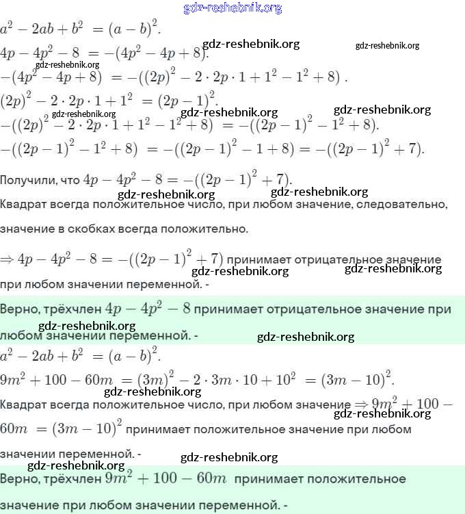 gdz-reshebnik.org - сайт готовых домашних заданий и решебников для школьников по Алгебре для седьмого класса. Предоставляем готовые ответы на задания, авторские материалы к Рабочей тетради Миндюк, Шлыкова УМК Часть 1, 2 - §29. Разложение на множители с помощью формул квадрата суммы и квадрата разности 12 . Основная часть контента представлена в бесплатном онлайн-формате с удобным и простым интерфейсом.