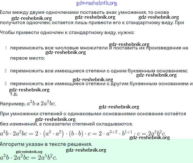 ГДЗ решебники Учебник по Алгебре 7 класс Мордкович Часть 1 Базовый уровень - §22. Умножение одночленов. Возведение одночлена в натуральную степень 1