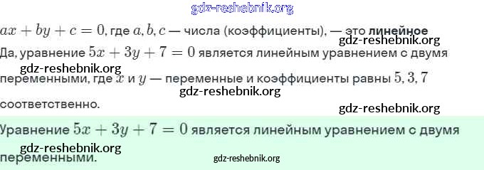§ 7. Линейное уравнение с двумя переменными и его график