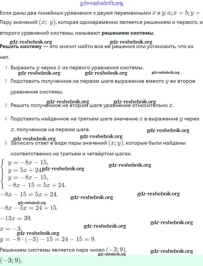 ГДЗ решебники Задачник по Алгебре 7 класс Мордкович, Александрова Часть 2 Базовый уровень - § 12. Метод подстановки 1