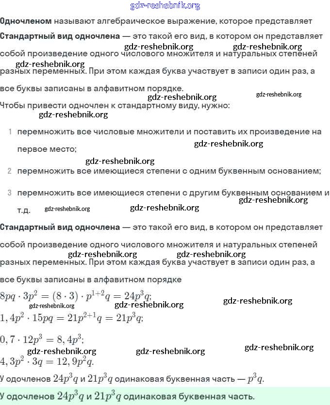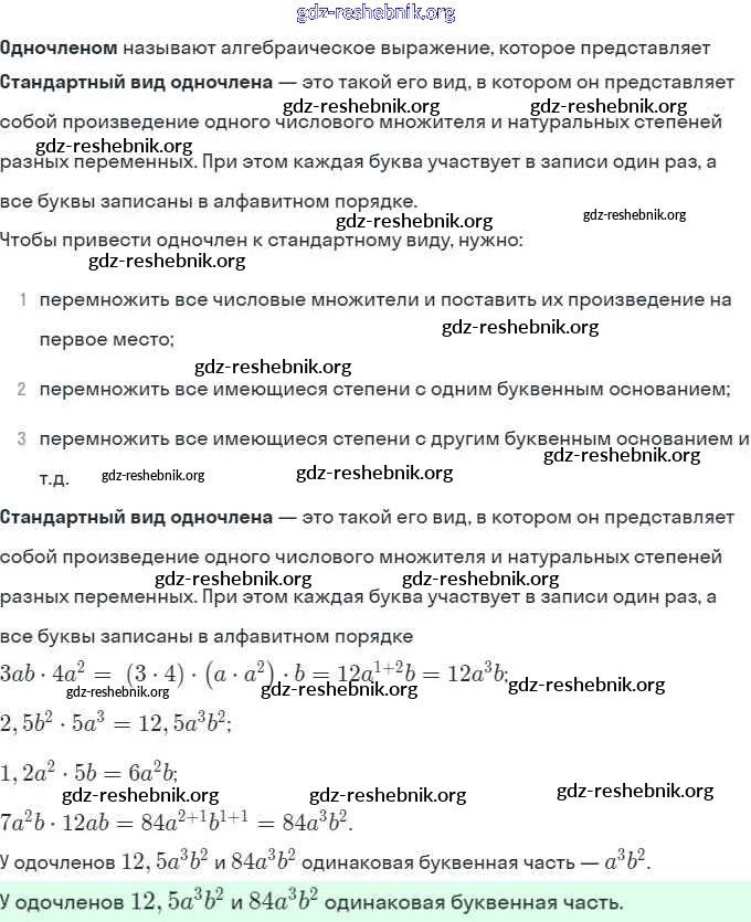 § 22. Умножение одночленов. Возведение одночлена в натуральную степень