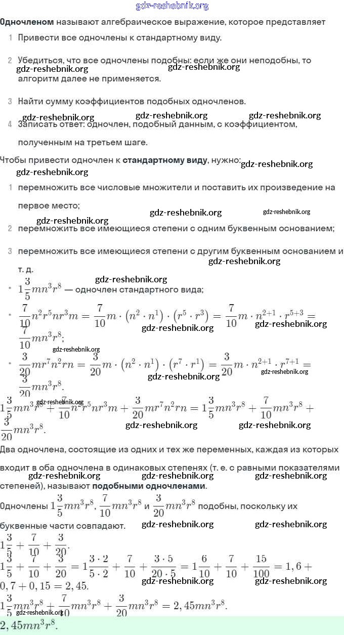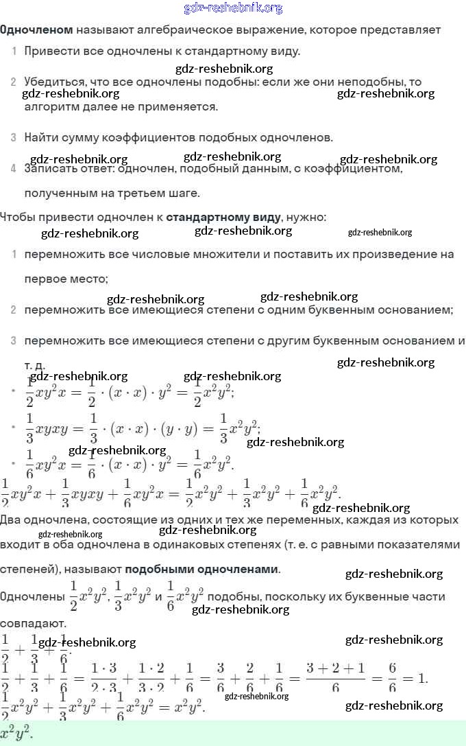 § 22. Умножение одночленов. Возведение одночлена в натуральную степень