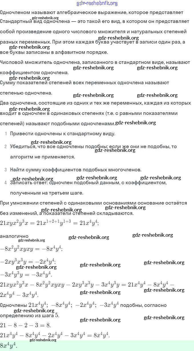 § 22. Умножение одночленов. Возведение одночлена в натуральную степень