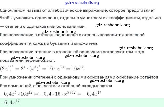 gdz-reshebnik.org - сайт готовых домашних заданий и решебников для школьников по Алгебре для седьмого класса. Предоставляем готовые ответы на задания, авторские материалы к Задачнику Мордкович, Александрова Часть 2 Базовый уровень - § 22. Умножение одночленов. Возведение одночлена в натуральную степень 16 . Основная часть контента представлена в бесплатном онлайн-формате с удобным и простым интерфейсом.