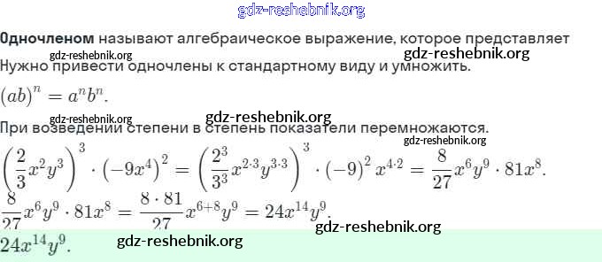 gdz-reshebnik.org - сайт готовых домашних заданий и решебников для школьников по Алгебре для седьмого класса. Предоставляем готовые ответы на задания, авторские материалы к Задачнику Мордкович, Александрова Часть 2 Базовый уровень - § 22. Умножение одночленов. Возведение одночлена в натуральную степень 17 . Основная часть контента представлена в бесплатном онлайн-формате с удобным и простым интерфейсом.