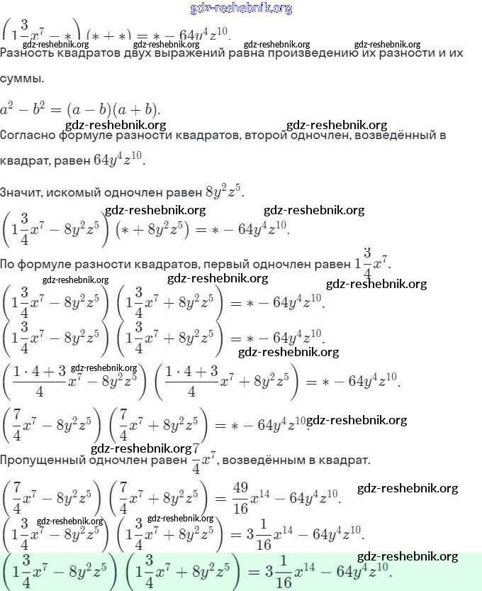 ГДЗ решебники Задачник по Алгебре 7 класс Мордкович, Александрова Часть 2 Базовый уровень - § 28. Формулы сокращенного умножения 62