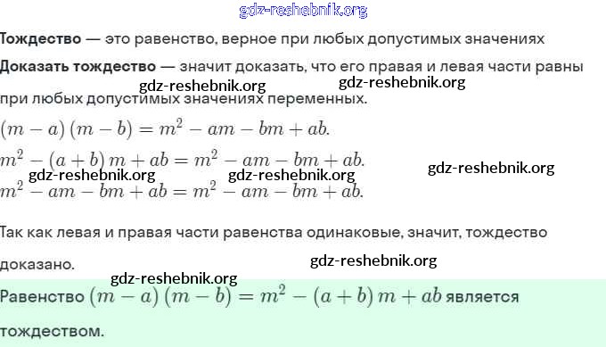 gdz-reshebnik.org - сайт готовых домашних заданий и решебников для школьников по Алгебре для седьмого класса. Предоставляем готовые ответы на задания, авторские материалы к Задачнику Мордкович, Александрова Часть 2 Базовый уровень - § 36. Тождества 14 . Основная часть контента представлена в бесплатном онлайн-формате с удобным и простым интерфейсом.