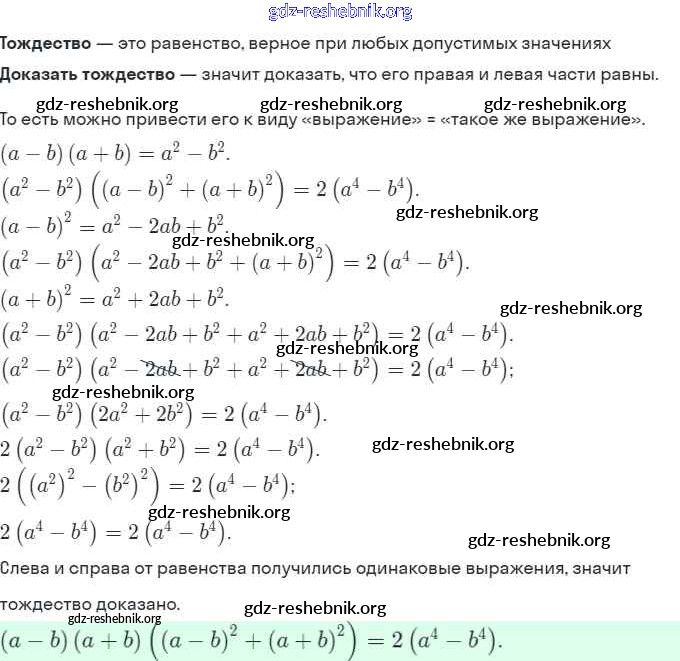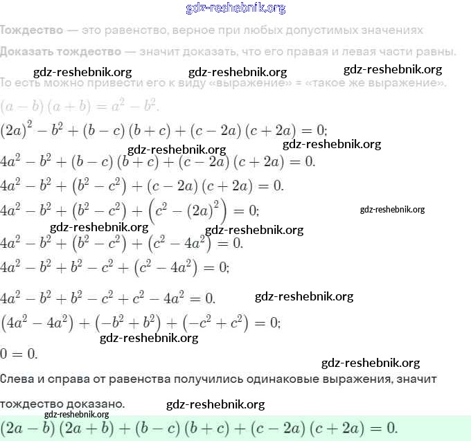 gdz-reshebnik.org - сайт готовых домашних заданий и решебников для школьников по Алгебре для седьмого класса. Предоставляем готовые ответы на задания, авторские материалы к Задачнику Мордкович, Александрова Часть 2 Базовый уровень - § 36. Тождества 17 . Основная часть контента представлена в бесплатном онлайн-формате с удобным и простым интерфейсом.