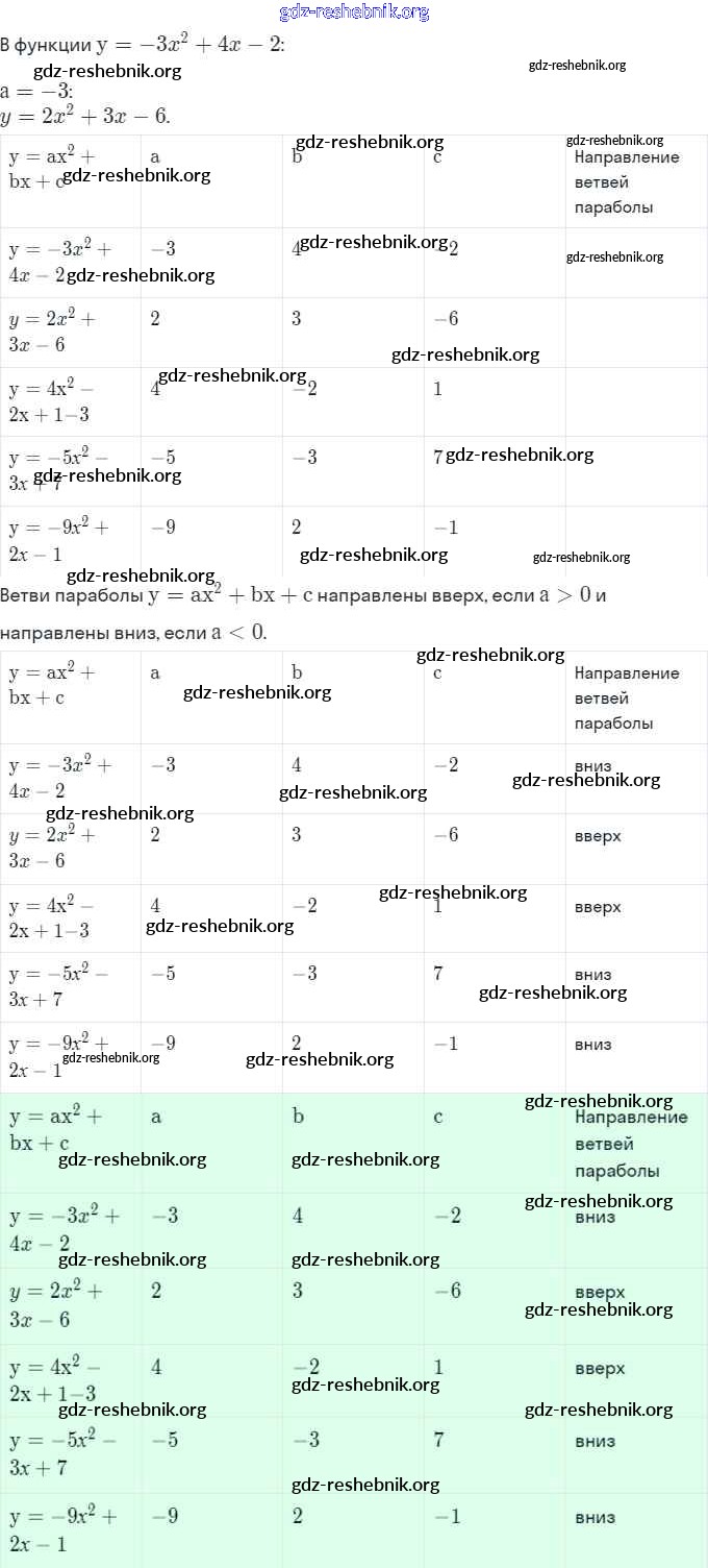ГДЗ решебники Рабочая тетрадь по Алгебре 8 класс Ключникова, Комиссарова УМК Часть 1 - §22. Функция y = ax² + bx + c, её свойства и график 2