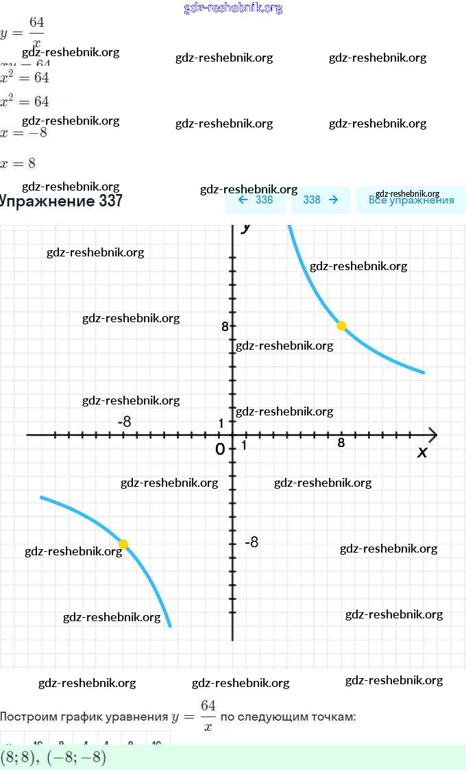 ГДЗ решебники Учебник по Алгебре 8 класс Мерзляк, Полонский Алгоритм успеха - §10. Функция. y=k/x и её график 337